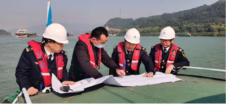 執(zhí)法人員對(duì)施工水域安全風(fēng)險(xiǎn)隱患進(jìn)行仔細(xì)研判
