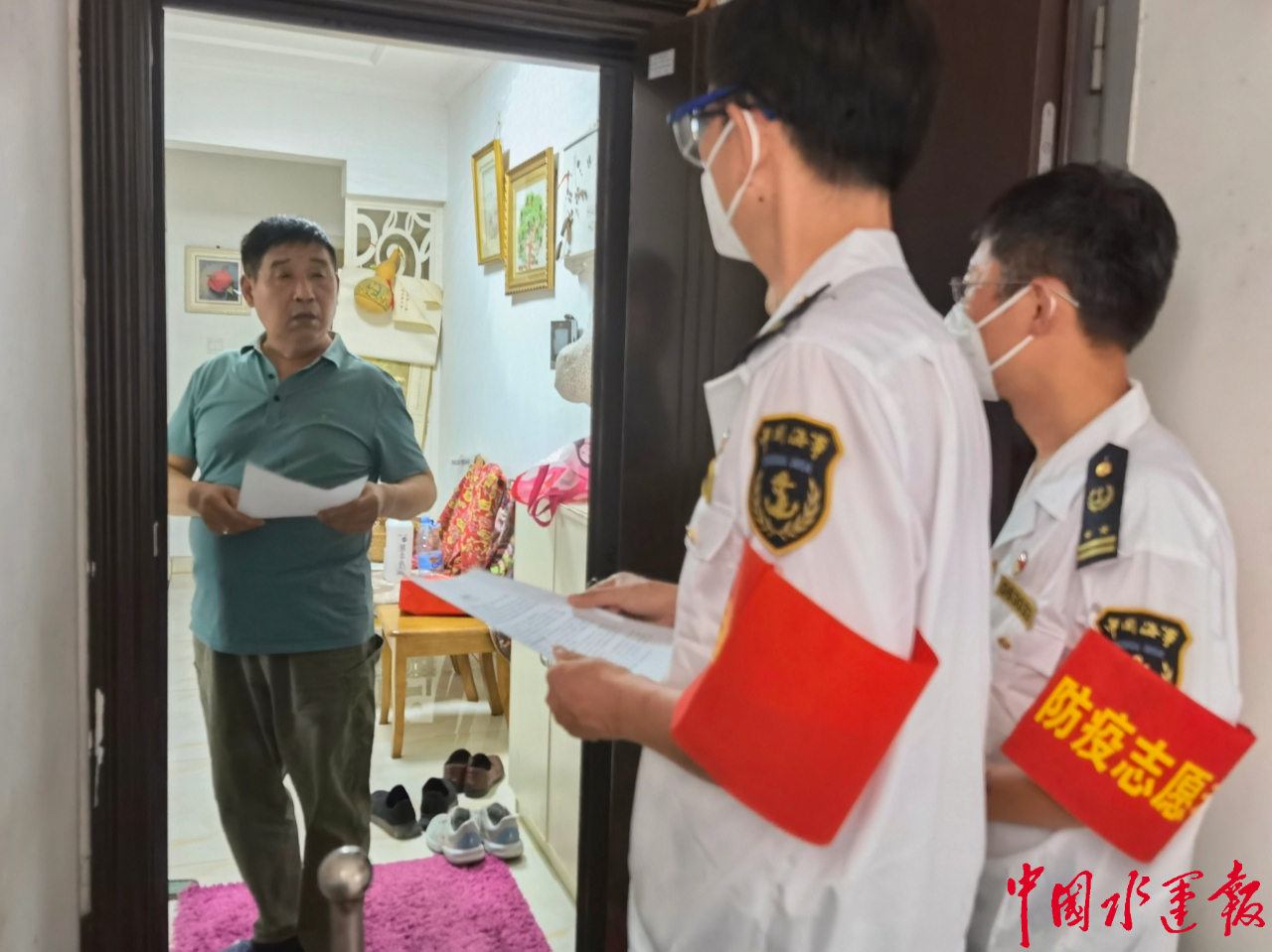 “咚咚咚……”8月3日下午,朱玉濤和同事又敲開(kāi)了一戶人家的門(mén),核對(duì)過(guò)信息,叮囑一番正準(zhǔn)備離去,就聽(tīng)老人說(shuō):“看見(jiàn)你們胸前的黨徽,我們心里就踏實(shí)。這么熱的天誰(shuí)不想呆在家里?不能不配合!”老人的話同樣感動(dòng)著左鄰右舍,海事人跑了十多戶人家,沒(méi)有拒絕的。