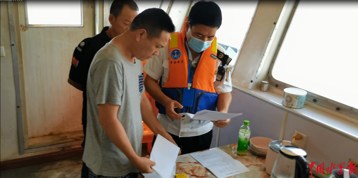 在樂清灣水域,聯(lián)合行動組對過往運砂船進行現(xiàn)場檢查,重點核查了船舶證書,船舶配員情況以及甚高頻值守情況。同時,聯(lián)合行動組還通過甚高頻對過往船舶進行商漁船防碰撞提醒。