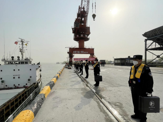 收到“遠征”輪入境申報信息后,池州出入境邊防檢查站高度重視,組織召開邊檢勤務部署會,根據(jù)船舶入出境情況,結(jié)合口岸管控實際,科學優(yōu)化勤務組織方案,為出入境船舶提供24小時全天候、零等待的通關(guān)服務保障,最大限度節(jié)約了企業(yè)運營成本,縮短服務對象信息申報、證件辦理時間,該站用“優(yōu)質(zhì)、高效、專業(yè)”的服務,圓滿完成了首艘外輪入境邊防檢查工作任務。