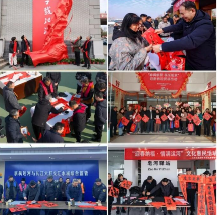 本次活動(dòng)以邵伯船閘為主會(huì)場(chǎng),同步在藺家壩、皂河、淮安、施橋、諫壁五座船閘設(shè)立分會(huì)場(chǎng),六地聯(lián)動(dòng)打造出一條貫穿京杭運(yùn)河江蘇段的千里“水上春聯(lián)文化長(zhǎng)廊”,將新春的喜慶與溫暖鋪展在運(yùn)河水面;顒(dòng)以春聯(lián)為核心載體,不僅為船民們送上新春的美好祝愿,還貼心開(kāi)展“墨香送祝福”“拍照過(guò)大年”系列暖心活動(dòng),讓常年漂泊水上的船員們感受到別樣的新春溫情。