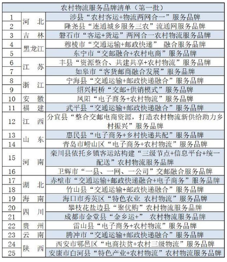 4月17日,交通運輸部運輸服務(wù)司發(fā)布公告,對首批擬確定25個農(nóng)村物流服務(wù)品牌予以公示,公示期限為2020年4月17日至4月24日。