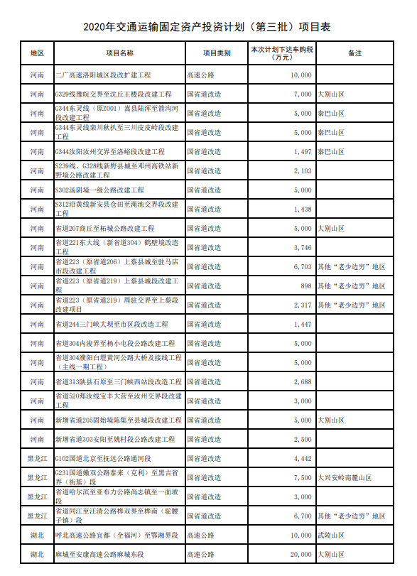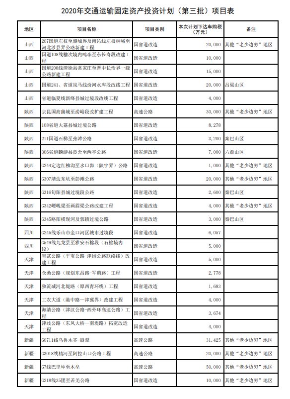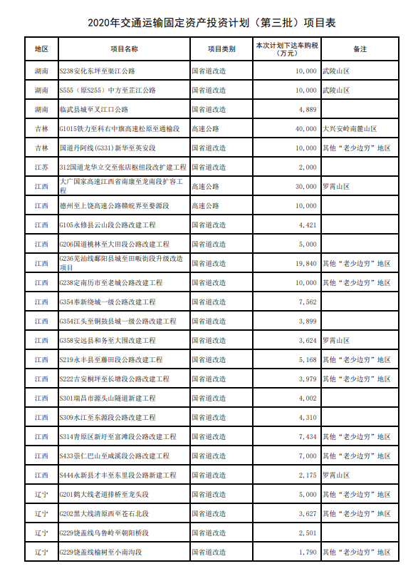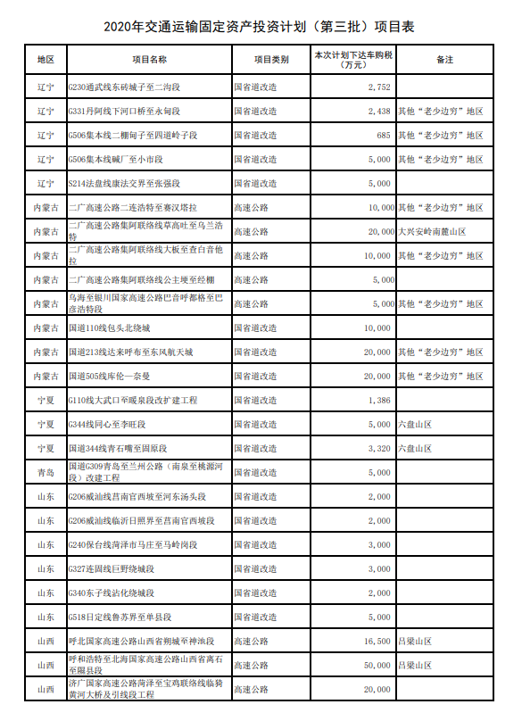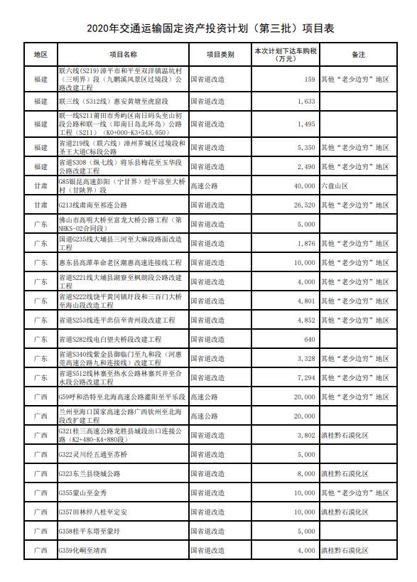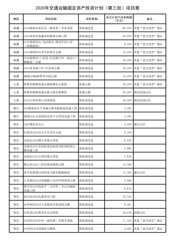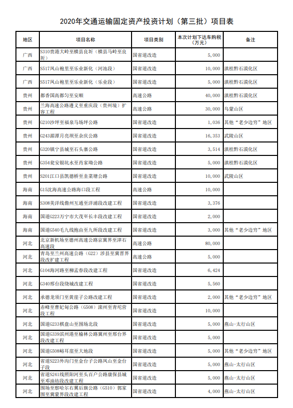 附件1.2020年交通運(yùn)輸固定資產(chǎn)投資計(jì)劃(第三批)項(xiàng)目表