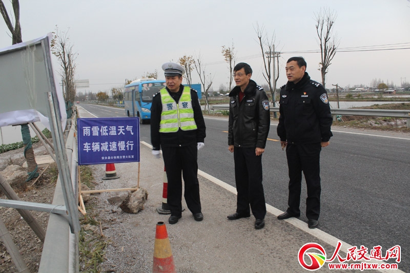 人民交通網(wǎng)訊(通訊員 楊文)12月29日,安鄉(xiāng)縣公安局政委汪洋先后來到安鄉(xiāng)大橋、陸家渡大橋,對交警大隊(duì)雨雪冰凍天氣下的交通應(yīng)急管理工作進(jìn)行督導(dǎo)檢查。交警大隊(duì)副大隊(duì)長邱鐵剛、安宣辦主任范春海陪同檢查。