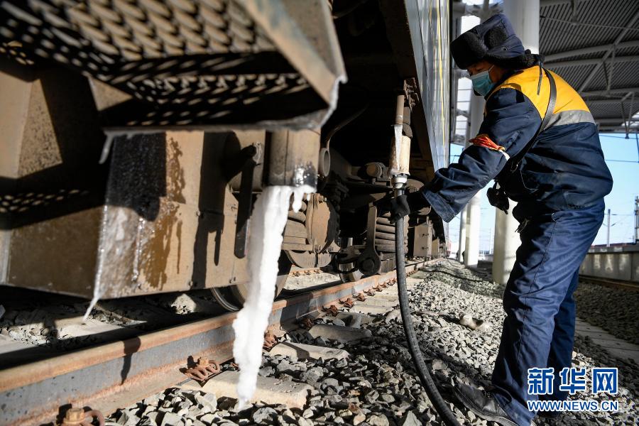 1月6日,寧夏銀川市最低氣溫達到零下21攝氏度,鐵路戶外工作者堅守崗位,保障列車運行。
