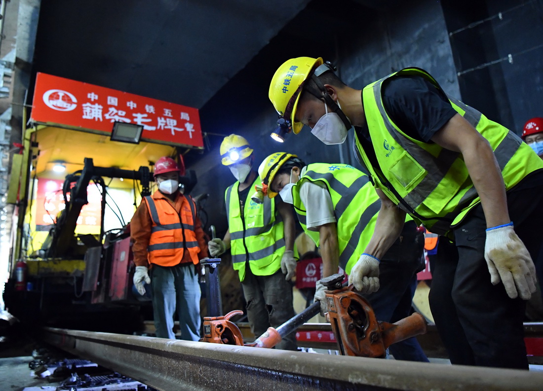 9月21日,鄭(州)許(昌)市域鐵路鄭州段軌道貫通。鄭許市域鐵路工程又稱鄭州機(jī)場至許昌市城市軌道交通工程,是一條連接鄭州市與許昌市的城市軌道交通系統(tǒng),全長67.13公里,設(shè)計(jì)時(shí)速120公里。新華社記者 李嘉南 攝