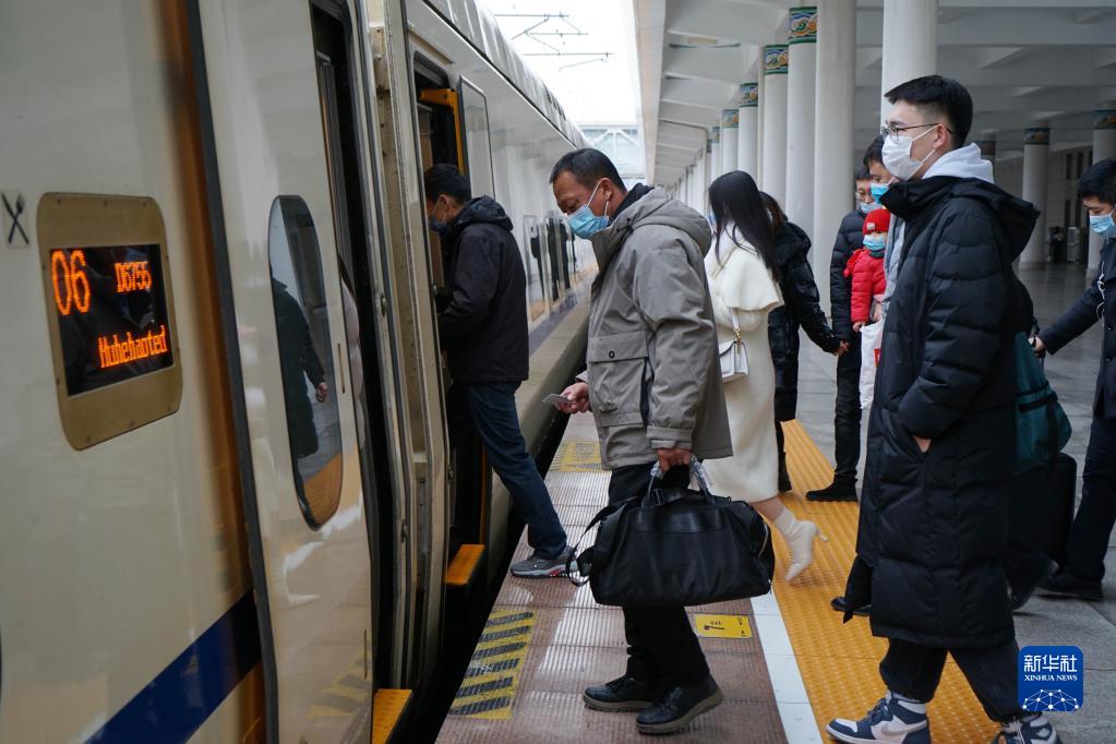 12月8日,旅客在呼和浩特站排隊(duì)登車。新華社記者 侯維軼 攝