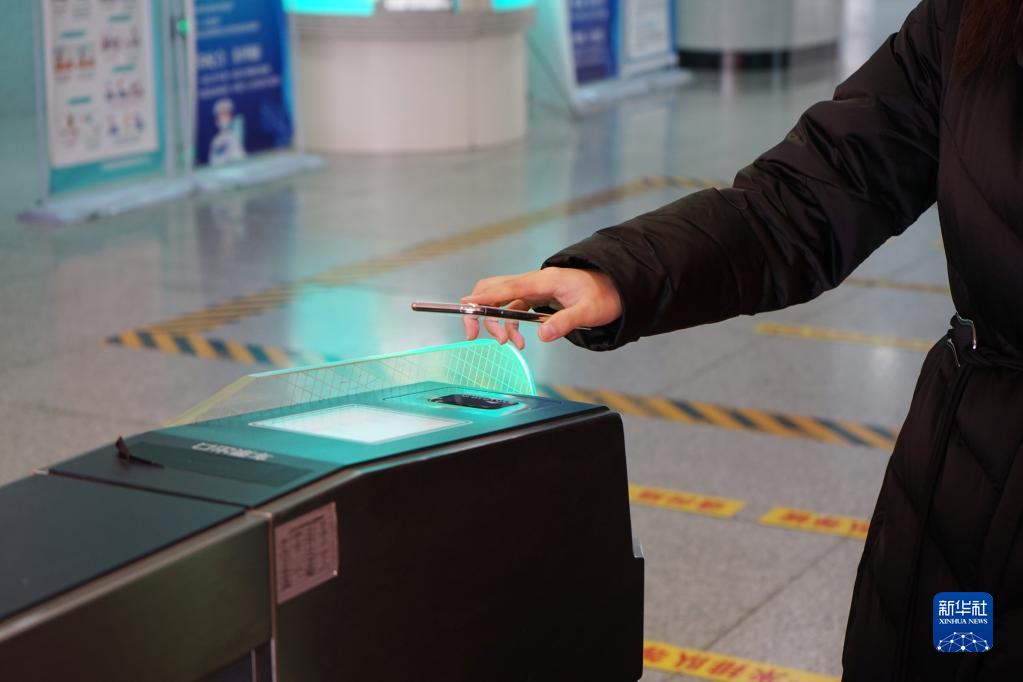 12月8日,旅客在呼和浩特站使用“鐵路e卡通”服務(wù)出站。新華社記者 安路蒙 攝