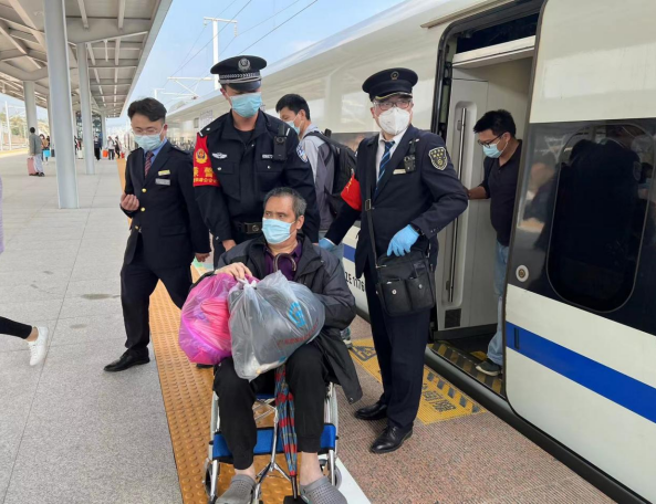 聞訊,乘警立即火速趕到事發(fā)處,發(fā)現(xiàn)一名男性乘客坐在3號車廂10D座位上,經(jīng)乘警觀察,發(fā)現(xiàn)該旅客面色蒼白、身體無法行動。乘警詢問該男性乘客情況,其告訴乘警其中風(fēng)發(fā)作,導(dǎo)致身體無法動彈。因情況緊急,乘警李智當即通知列車工作人員廣播尋醫(yī),并第一時間聯(lián)系龍川西站,反映車內(nèi)旅客身體情況,請求龍川西站準備輪椅或擔架并聯(lián)系120救護車。