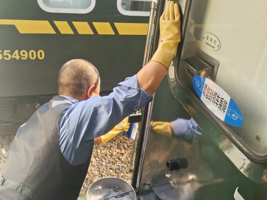 車窗玻璃被擦拭得透亮,讓旅客能夠清晰地欣賞沿途的風(fēng)景。衛(wèi)生間、洗漱間等重點(diǎn)區(qū)域,更是進(jìn)行了深度清潔和消毒,確保無異味、無污垢,為旅客提供良好的使用體驗。該列車組列車長李向?qū)挿Q,節(jié)前學(xué)生流、務(wù)工流、探親流疊加,客流比較集中,又加之全國多地流感高發(fā),只有全力做好衛(wèi)生服務(wù),才能真正為旅客營造一個溫馨、安全的旅途環(huán)境。