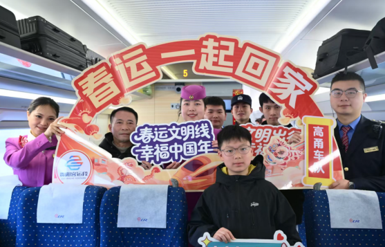 2月2日,恰逢盤興高鐵開通后的首個春運(yùn),由貴陽客運(yùn)段高甬車隊D17組值乘的寧海開往興義南G2332/3次列車上,一場“文明點(diǎn)亮春運(yùn)路·團(tuán)圓提速暖人心”主題活動,讓每一位從外地返鄉(xiāng)的旅客,在高鐵上邂逅新春的喜慶,感受旅途的溫暖,讓團(tuán)圓之路既有“速度”更有“溫度”。