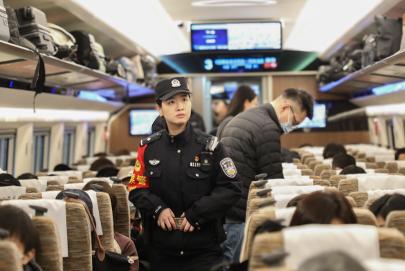 439.8米長的高鐵車廂就是她的“主場”,她要在這個移動的轄區(qū)里連續(xù)工作近22個小時行走近3萬步,瘦小的身影穿梭在京滬、京青線的列車上,她的目光掃過行李架上每一處縫隙,指尖劃過消防器材的封簽,耳畔時刻留意著旅客的每一聲求助