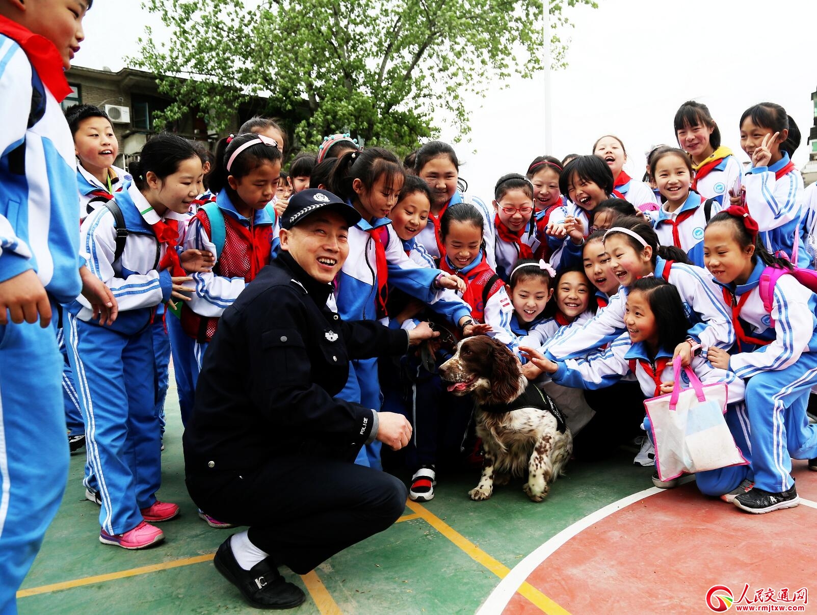 4、參加活動(dòng)小朋友與警犬“森力”合影。