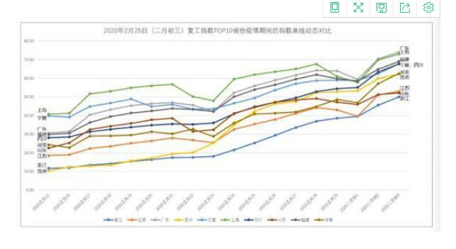 鑒于以往國內(nèi)物流行業(yè)復(fù)工是在正月十五后,為減少春節(jié)假期因素帶來的影響,追溯TOP10省份自正月十五至二月初三的指數(shù)曲線變化,進(jìn)一步發(fā)現(xiàn):從地理分布上來看,上述TOP10中,廣東、上海、福建、四川、貴州、江西、浙江、江蘇等七個(gè)省份均位于南方。這可能是因?yàn)槭軞夂驐l件差異影響,北方有些地方還比較寒冷,會(huì)在一定程度上影響復(fù)工。