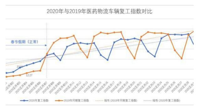 醫(yī)藥物流方面,因疫情防控和疾病救治需要,絕大多數(shù)醫(yī)藥物流車輛處于已復(fù)工狀態(tài),并且已復(fù)工車輛基本上處于滿負(fù)荷和高負(fù)荷運(yùn)行狀態(tài)。