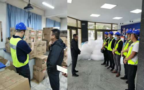 由于此次搬遷工作的開展時(shí)間節(jié)點(diǎn)仍處于疫情敏感期,順豐快運(yùn)為了確保整個(gè)搬運(yùn)流程安全,對所有參與搬運(yùn)的工作人員進(jìn)行多次體溫測量,并要求其在作業(yè)期間佩戴好安全帽。