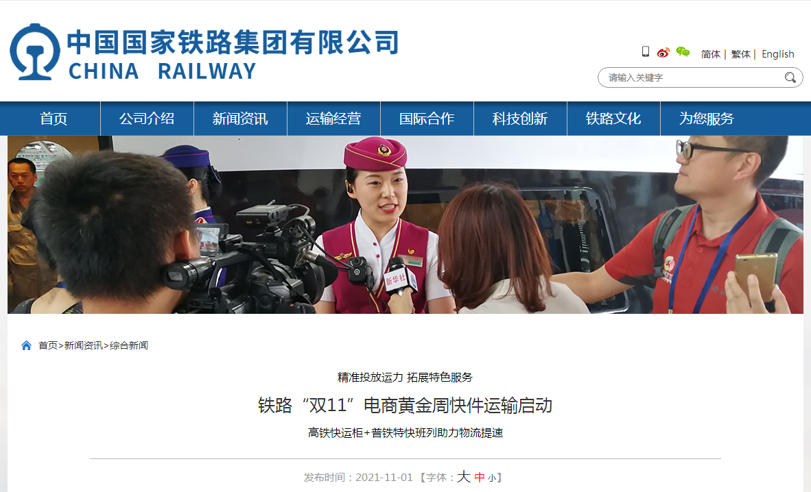 11月1日,中國國家鐵路集團有限公司通過官網(wǎng)宣布啟動“雙十一”電商黃金周快件運輸服務(wù),將在11月1日至20日電商網(wǎng)絡(luò)購物高峰期利用高鐵快運柜+普鐵特快班列推出多項運輸服務(wù)舉措,助力物流提速。
