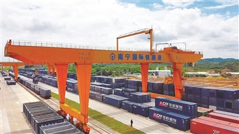 正在大力開發(fā)建設的南寧國際鐵路港,是西部陸海新通道重點培育的鐵路物流基地、廣西實施強首府戰(zhàn)略標志性重大產業(yè)項目。該鐵路港用地規(guī)模8140畝,規(guī)劃總運量為每年2000萬噸,總體功能布局為“一核兩港七區(qū)”;自2018年5月開通運營以來,已成功開辟10條線路,包括南寧至甘肅、南寧至越南河內、越南至南寧至比利時等多個方向的班列,未來將逐步推進“兩廣班列”“中越班列”“兩港班列”等多式聯運班列的開行,輻射國內各地以及東南亞、歐洲等地區(qū)國家。