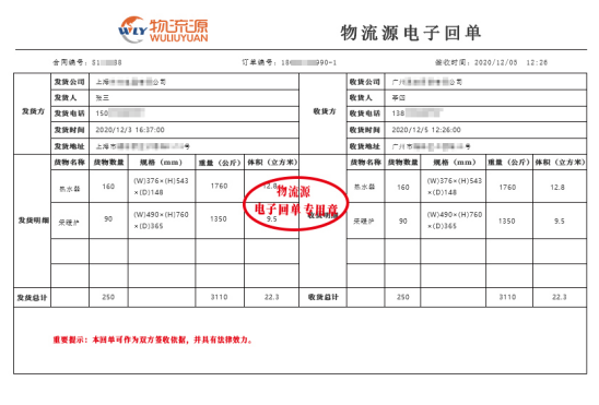 簽收完成立即生成數(shù)字化電子回單,線上同步回傳;物流源的數(shù)字化電子回單由中國金融認證中心、中科院國家授時中心兩家國家級機構(gòu)提供認證服務(wù),具有法律效力。企業(yè)財務(wù)可放心用它作為催繳貨款、結(jié)算運費的憑證,不用等待紙質(zhì)回單郵寄或站點回傳,大大縮短了回收周期,同時保證了物流回單的安全性。