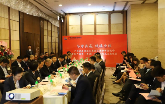 揭牌儀式當(dāng)天,現(xiàn)場(chǎng)還舉行了“與君共贏 鏈接全球”廣西供應(yīng)鏈服務(wù)集團(tuán)在港合作交流會(huì)。張艷代表供應(yīng)鏈集團(tuán)向各參會(huì)的銀行機(jī)構(gòu)、合作企業(yè)及商會(huì)組織作業(yè)務(wù)推介。與會(huì)嘉賓代表就物產(chǎn)國(guó)貿(mào)(香港)公司的下一步合作發(fā)展進(jìn)行了深入探討交流。