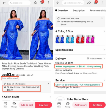 更重要的是,據(jù)菜鳥國際快遞方面介紹:升級后的履約時(shí)效可從原來的30天縮短至12天,物流成本在當(dāng)前沙特?zé)o憂標(biāo)準(zhǔn)報(bào)價(jià)基礎(chǔ)上降低30%。此外,速賣通平臺內(nèi)全鏈路打標(biāo)“X日達(dá)、晚必賠”、“含VAT”、“滿50包郵”標(biāo)識,幫助商家提升購買轉(zhuǎn)化率。