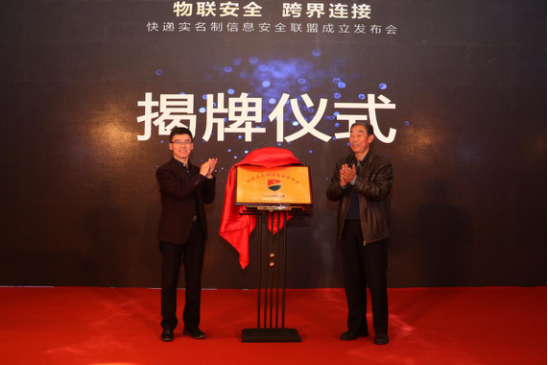 原國家郵政局政策法規(guī)司司長,中國快遞協(xié)會(huì)原副會(huì)長兼秘書長達(dá)瓦(右) 信息安全聯(lián)盟常務(wù)副主席李勇虎(左)共同為聯(lián)盟揭牌