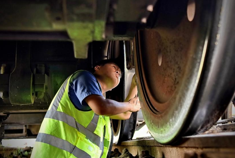近日,中國鐵路武漢局江岸機(jī)務(wù)段針對(duì)機(jī)車經(jīng)歷天氣的驟然變化后,容易產(chǎn)生部件老化變形龜裂等問題,進(jìn)行集中整治。特別是對(duì)內(nèi)燃機(jī)車高溫高壓部分進(jìn)行重點(diǎn)整治,確保機(jī)車“健康”應(yīng)對(duì)“秋老虎”,促進(jìn)暑運(yùn)工作完美收官。圖為“青年文明號(hào)”HXN3B019機(jī)車包乘組在指導(dǎo)司機(jī)帶領(lǐng)下頭頂烈日保養(yǎng)整治機(jī)車。