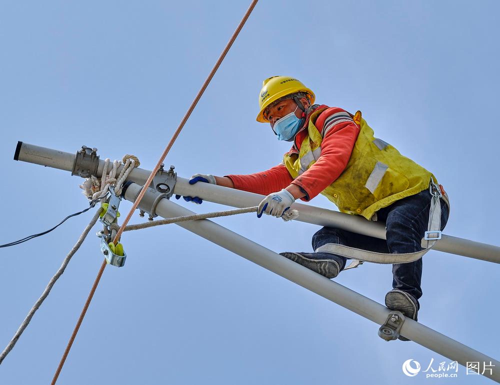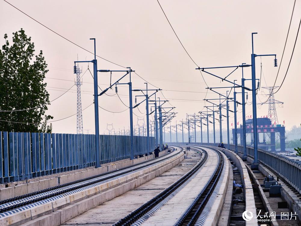 4月11日,中鐵電氣化局三公司和中鐵十局的員工正在進行放線施工作業(yè)。