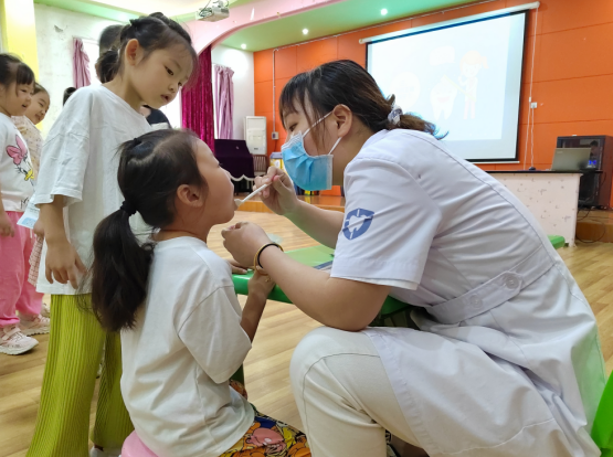 齲齒病是危害兒童健康和生長(zhǎng)發(fā)育最常見(jiàn)的口腔疾病,為了培養(yǎng)孩子們從小愛(ài)護(hù)牙齒的好習(xí)慣,安徽合肥經(jīng)開(kāi)區(qū)朝霞居民區(qū)新時(shí)代文明實(shí)踐站聯(lián)合陽(yáng)光公益、佳德口腔在海恒教育朝霞幼兒園開(kāi)展“呵護(hù)孩子牙齡 涂氟預(yù)防齲病”全國(guó)愛(ài)牙日主題活動(dòng),邀請(qǐng)專(zhuān)業(yè)牙科醫(yī)生為孩子們講解牙齒知識(shí)并檢查幼兒口腔健康狀況。