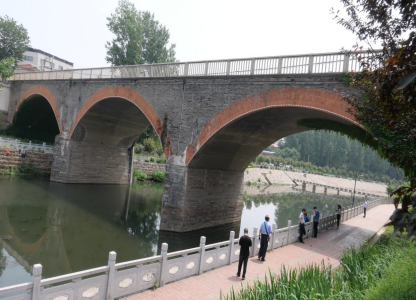 河南省信陽市有各種各樣的橋,輕輕翻開書卷,便能一覽‘千傾煙霞逐水流,處處無不有橋影’的秀麗風光。古代的單拱石橋、三拱石橋、城區(qū)里的過街天橋、立交橋、鋼拉橋、彩虹橋。但是唯有平橋區(qū)明港鎮(zhèn)中山街北頭,座落在明河上沒有使用鋼筋混凝土的青、紅磚大橋--明河大橋。