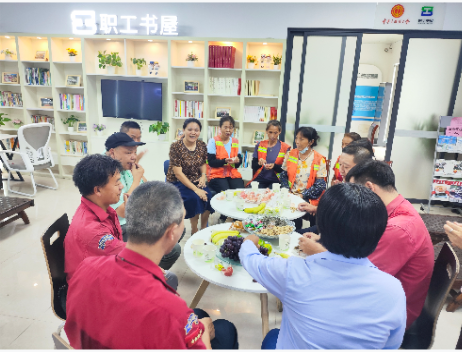 在滘口汽車站愛心驛站內(nèi),工作人員一早準備好月餅、水果,臨近中午,環(huán)衛(wèi)工作、司機等戶外工作者陸陸續(xù)續(xù)到這個他們平時的“歇腳地”——愛心驛站稍作休息時,工作人員熱情地邀請他們圍桌而坐,共享中秋美食,驚喜的笑容在他們臉上綻開。“沒想到今年中秋節(jié)第一個月餅是在驛站嘗到的,平常中午休息吃飯我也經(jīng)常來這里,有這樣一個地方歇歇腳,太方便太暖心了。”保潔工李阿姨開心的說道。“謝謝你們,月餅真甜,真好吃!”進站充電的王大哥在海珠客運站戶外勞動者愛心驛站提前吃到了工作人員送來的月餅,期間,驛站工作人員親切地與戶外勞動者們話家常,大家齊聚驛站品嘗月餅、水果和茶飲。