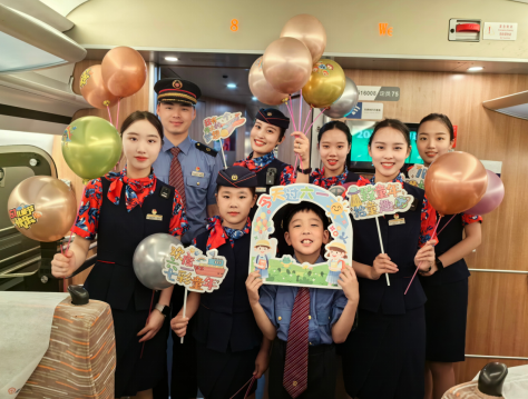 臨近“六一”國(guó)際兒童節(jié),在北京西開往鄭州東的G95次列車上,兩位8歲兒童穿上鐵路制服,擔(dān)任“小小列車長(zhǎng)”,走進(jìn)爸爸媽媽工作的地方,度過一個(gè)不一樣的兒童節(jié)。通過學(xué)習(xí)觀摩,學(xué)習(xí)整理儀容、檢查設(shè)備設(shè)施、引導(dǎo)旅客乘車等,體驗(yàn)乘務(wù)工作,讓職工子女走進(jìn)鐵路,了解鐵路,理解父母,共同感受體驗(yàn)鐵路工作的魅力。(鄭州客運(yùn)段高鐵一隊(duì) 劉丹)