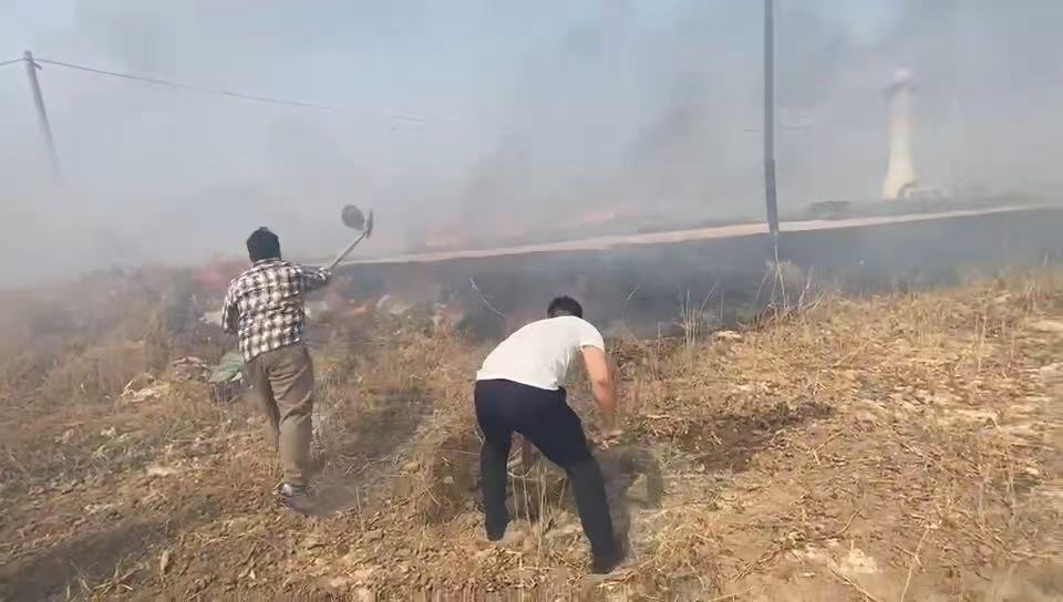 “當(dāng)時(shí)在遠(yuǎn)處的空地冒著連片的火光,滾滾濃煙直往上冒,趕緊和附近的好友聯(lián)系上,一起趕往現(xiàn)場(chǎng)查看情況。”崔玉才介紹說(shuō)道。身為一名人民子弟兵的崔玉才顧不上多想,火情就是命令,立即大聲喊住好友,驅(qū)車(chē)前往火情現(xiàn)場(chǎng)。到達(dá)現(xiàn)場(chǎng)后,崔玉才發(fā)現(xiàn)火情位于兩村交界處的空地上,周?chē)J葦叢生,火勢(shì)兇猛,隨時(shí)可能危及當(dāng)?shù)卮迕癜傩丈?cái)產(chǎn)安危。崔玉才心想:必須得把火情控制住,不然村民百姓生命財(cái)產(chǎn)受到危害,必須得求助,于是他立即撥打了119報(bào)警電話,并求助消防部門(mén)前來(lái)救援。