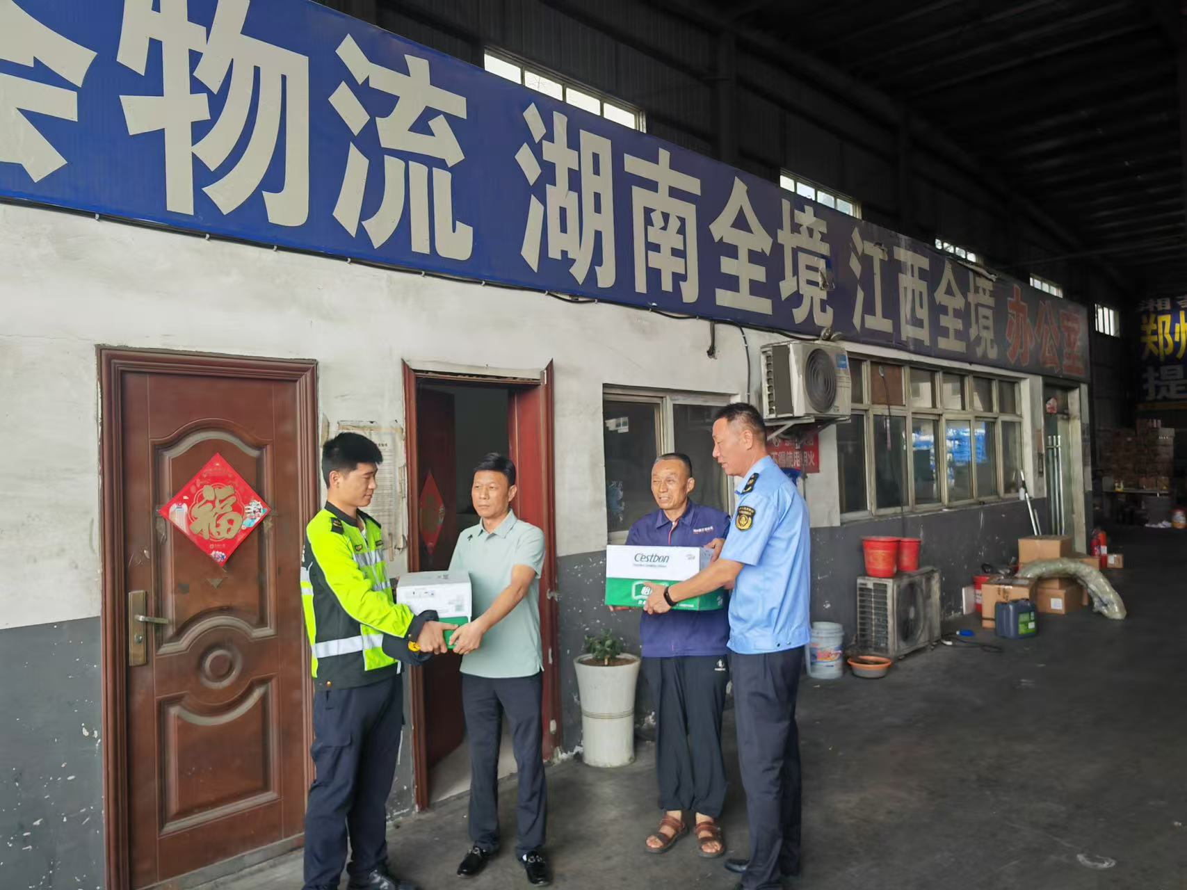 一位剛進(jìn)入聯(lián)合服務(wù)站辦公室的貨車(chē)司機(jī)接過(guò)防暑用品后感激地說(shuō):“天氣這么熱,你們提供避暑休息的場(chǎng)所,還送了這些東西,真是太貼心了,讓我們?cè)诠ぷ髦懈惺艿搅藴嘏?rdquo;