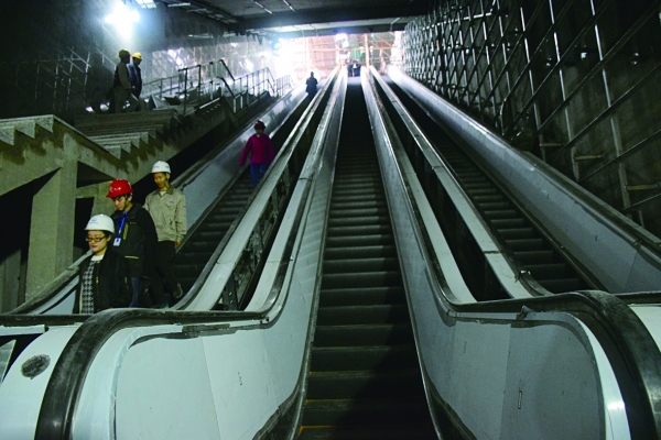 貴陽北站站是軌道交通1號線和S2號線的換乘站,乘客今后可在此換乘軌道交通和高鐵。該站站廳位于貴陽北站出站通道正下方,共設7個出入口,從西廣場3號出入口進入站廳,需要穿越高鐵站的出站大廳,這個入口的垂直落差有13米,安裝有長19米的自動扶梯。站廳裝修已進入尾聲,掛鐘、監(jiān)控攝像頭、屏幕掛架等都已安裝完畢,機電設備進入聯(lián)調階段。