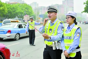 “網(wǎng)紅”交警在直播執(zhí)法過(guò)程。