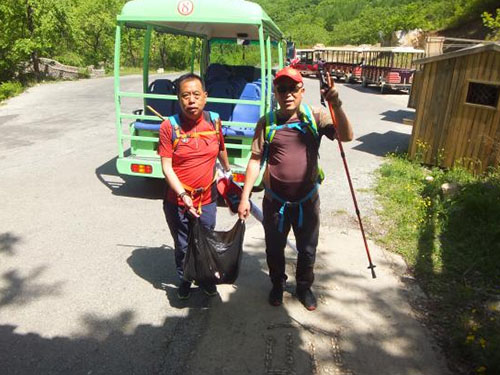 兩位志愿者拾取的景區(qū)垃圾