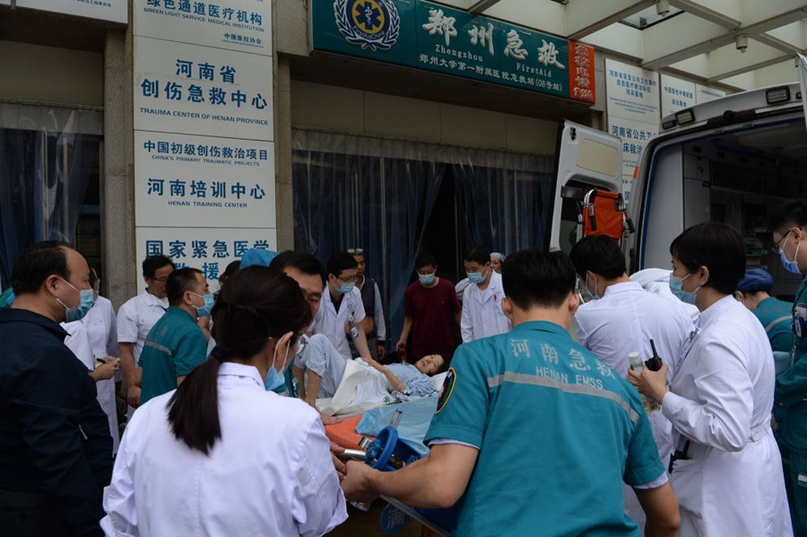 在鄭州大學(xué)第一附屬醫(yī)院,整個河醫(yī)院區(qū)從20日傍晚開始斷電,大約600名重癥患者生命安全受到威脅。21日凌晨1點左右,記者步行至醫(yī)院門診部,水深過腰,院內(nèi)很多車輛泡在水中;門診樓前、高架橋上都有不少人在避雨。截至當(dāng)天上午,記者在現(xiàn)場了解到,重癥病區(qū)患者大多數(shù)已完成轉(zhuǎn)院,但由于大部分病區(qū)仍未恢復(fù)供電,門診部已停止接診。
