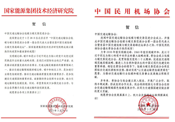 國家能源集團(tuán)技術(shù)經(jīng)濟(jì)研究院、中國民用機(jī)場(chǎng)協(xié)會(huì)、中國快遞協(xié)會(huì)、中國交通運(yùn)輸協(xié)會(huì)新技術(shù)促進(jìn)分會(huì)發(fā)來熱情洋溢的賀信。