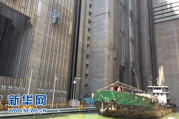 圖為船舶正經(jīng)三峽升船機(jī)通過三峽大壩 新華網(wǎng) 張道營 攝