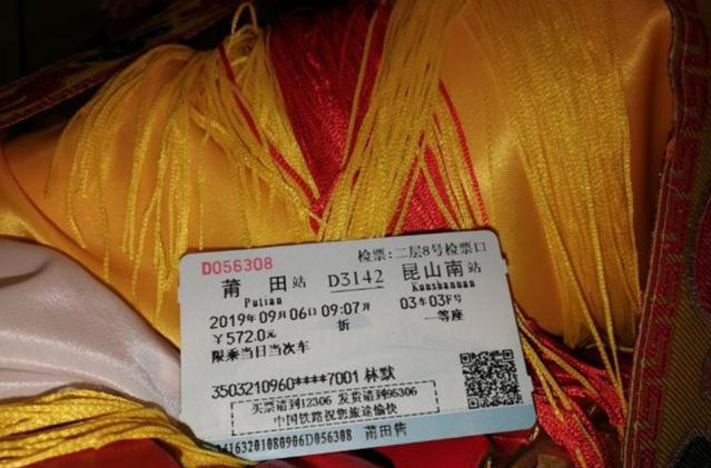 這次湄洲媽祖乘坐動車去昆山是為了開展巡安布;顒,媽祖的座位是3車3F,媽祖的身上放著一張實名車票,乘車人姓名為林默,身份證號上的出生年為公元960年。