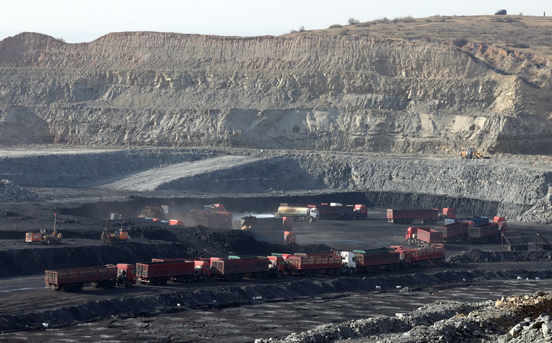 這是11月18日拍攝的內(nèi)蒙古鄂爾多斯市伊金霍洛旗境內(nèi)的榮恒煤礦一個(gè)露天采坑。新華社記者 賈立君 攝