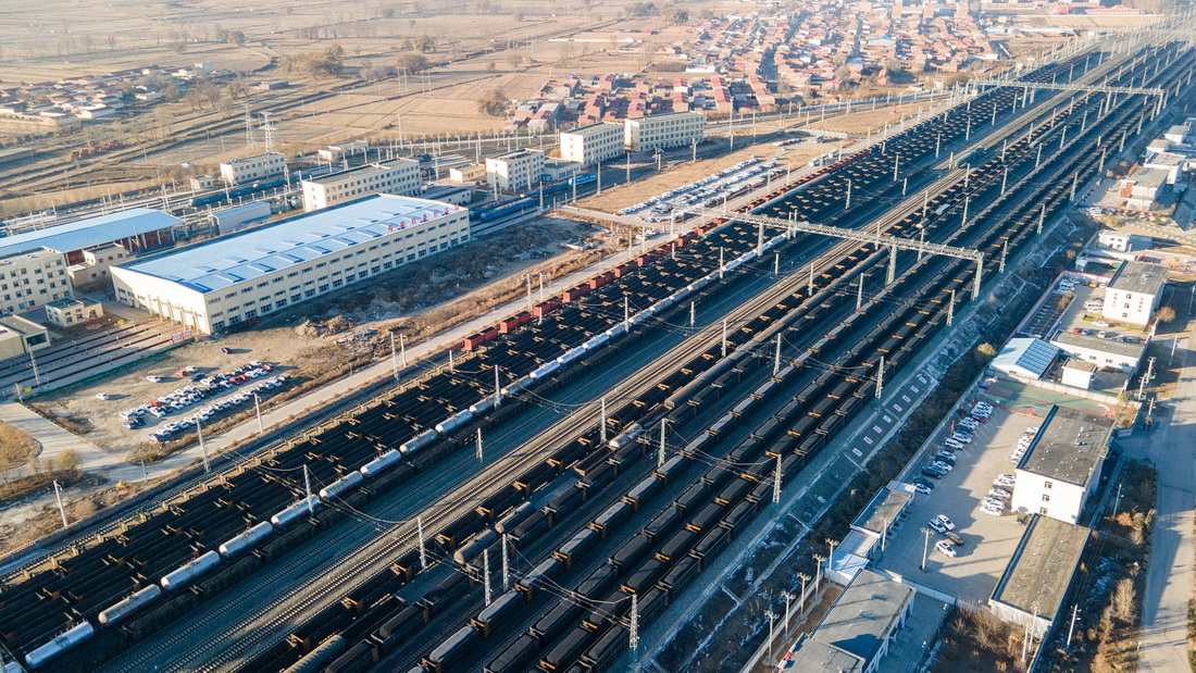 11月23日,運(yùn)煤列車在呼和浩特南站整裝待發(fā)(無人機(jī)照片)。新華社發(fā)(紀(jì)恩泉 攝)