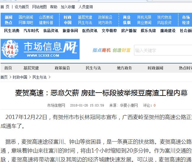 一知情人講:“廣西賀州交通投資集團(tuán)有限公司作為麥賀高速業(yè)主單位。目前,已經(jīng)付清了昌南集團(tuán)承包的麥賀高速公路房建一標(biāo)段勞務(wù)款項(xiàng)。昌南集團(tuán)應(yīng)該支付葉勇班組勞務(wù)工資的,對(duì)于至今拖欠農(nóng)民工資不給,實(shí)屬惡意拖欠農(nóng)民工工資。富川人社局相關(guān)領(lǐng)導(dǎo)為何不問(wèn)責(zé)昌南集團(tuán),一味地給一個(gè)帶隊(duì)的民工施壓,其用意不得而知”