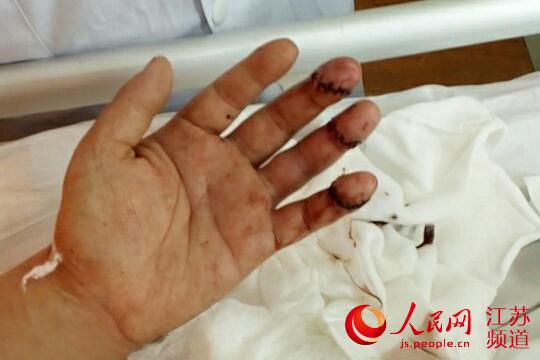 “我們和董某沒有直接的債務關系,貨款肯定不能直接給他。至少是陳老板同意后,我們才能把錢交給董某。”喬女士沒有答應董某的要求,卻遭來橫禍。她稱,對方一言不合就持刀砍人,她和員工老王都受了傷,老王傷勢較重,三根手指的肌腱斷裂,手術從當天下午4點做到晚上9點多,手指功能可能會受到影響。