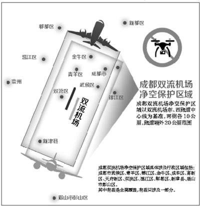 民航空中管制部門工作人員告訴記者,成都雙流機場凈空保護區(qū)域是以成都雙流國際機場東、西跑道中心線為基準,兩側(cè)各10公里,跑道端外20公里的范圍來劃定的。具體包括下列行政區(qū)域:成都市武侯區(qū)、青羊區(qū)、錦江區(qū)、金牛區(qū)、成華區(qū)、高新區(qū)、天府新區(qū)、雙流區(qū)、溫江區(qū)、郫縣、新津縣、眉山市彭山區(qū)。